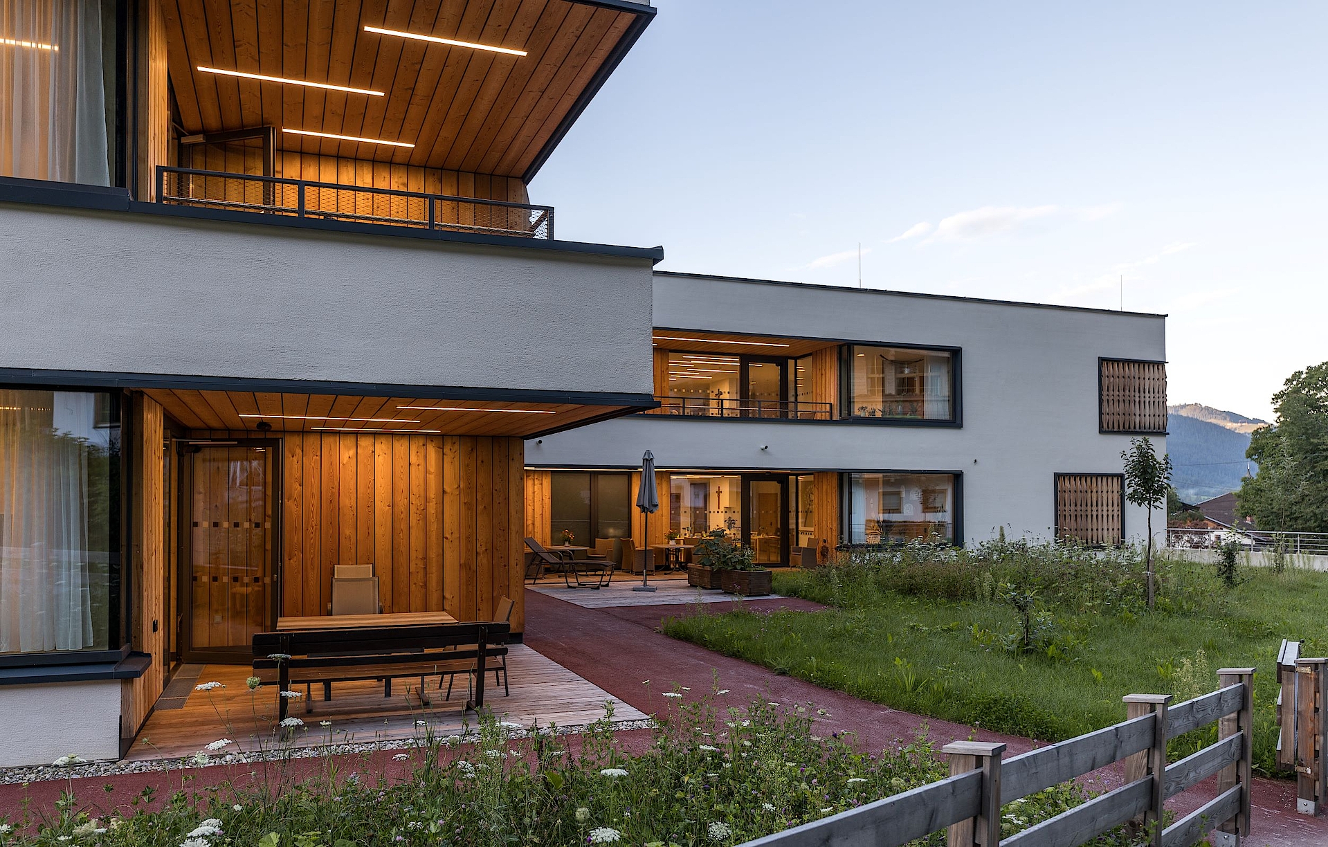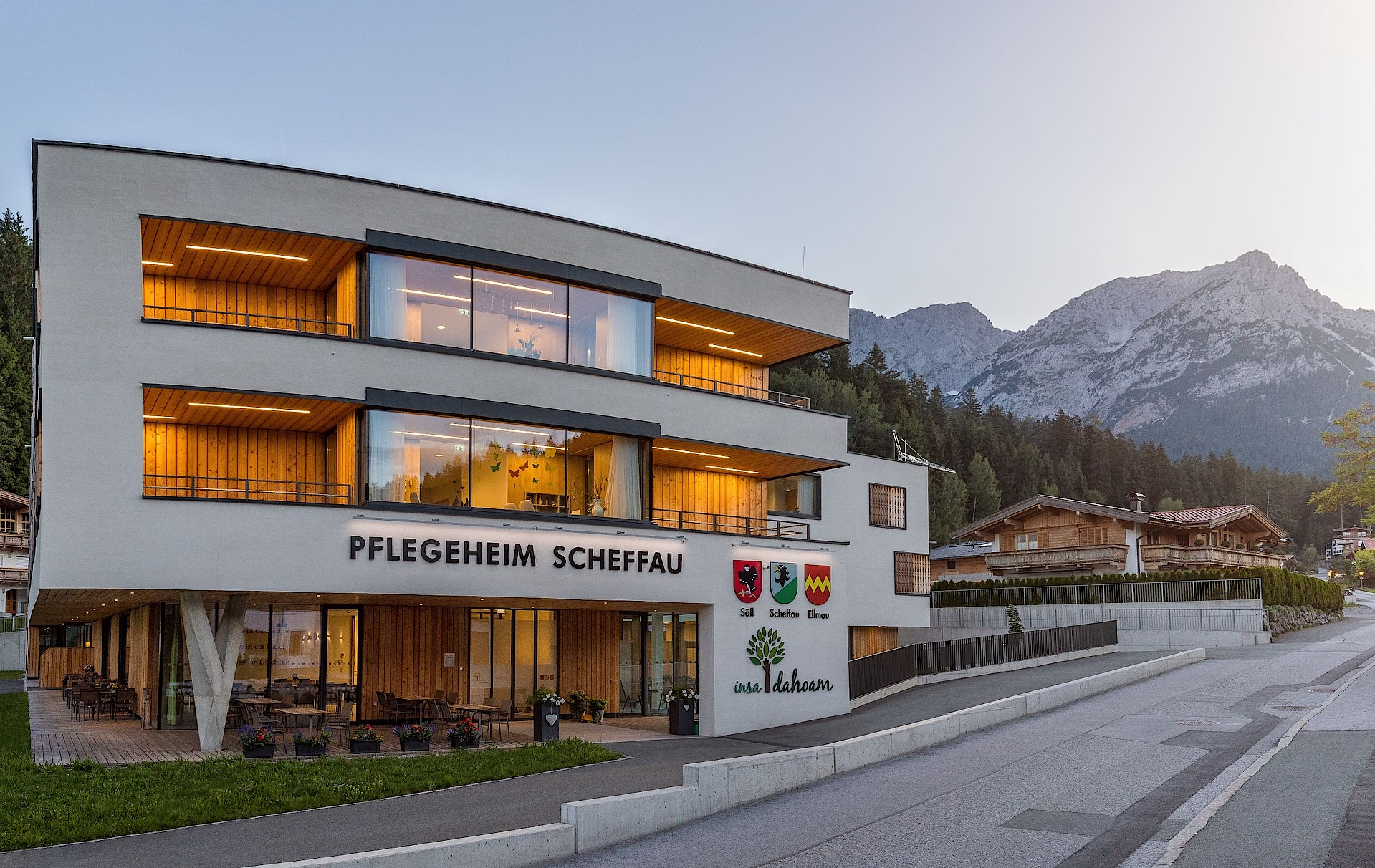 Durch die leichte Hangneigung wird den BewohnerInnen und auch den BesucherInnen des Pflegeheimes sowohl im Sommer als auch im Winter ein traumhafter Ausblick auf den kleinen Ort Scheffau gewährt. In den wärmeren Monaten können es sich die BewohnerInnen im Garten und auf den Terrassen des Pflegeheims gemütlich machen und das ruhige, idyllische Ambiente genießen.
